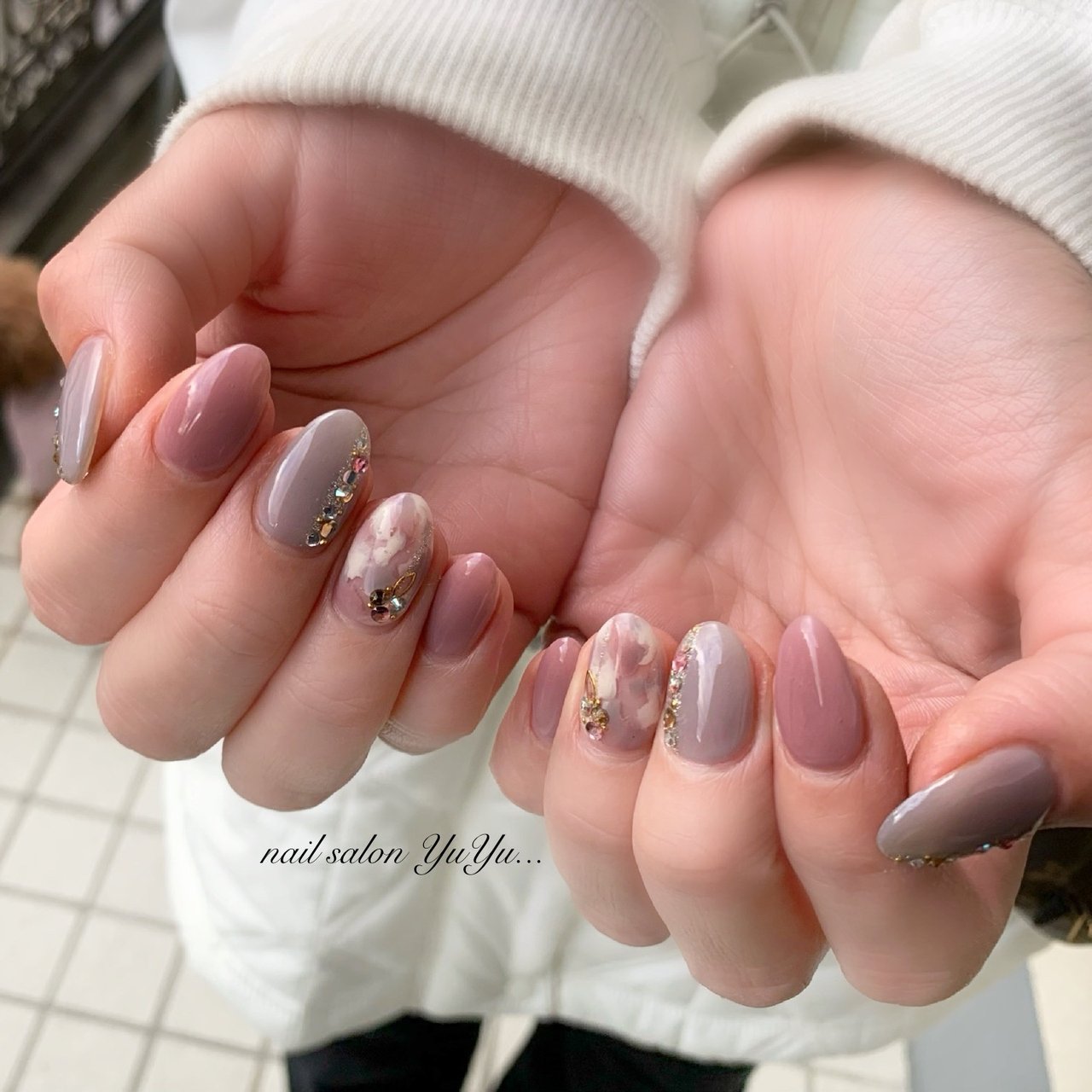秋 冬 ハンド ワンカラー マーブル Nail Salon Yuyuのネイルデザイン No ネイルブック