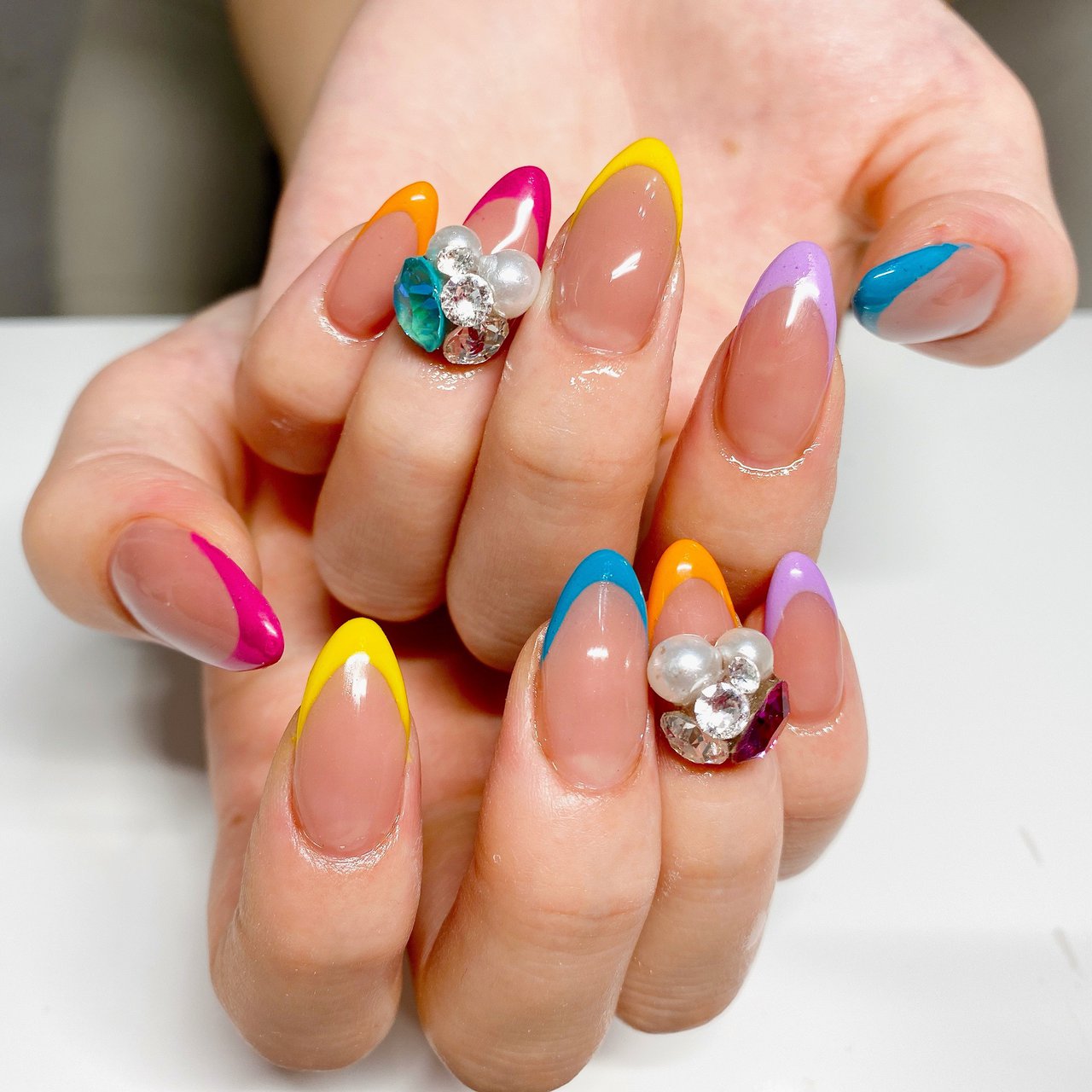 カラフル フレンチ ネイルのギャラリー